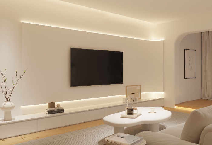 色溫選擇:不同的色溫會(huì)營(yíng)造出不同的氛圍。一般來說,3000K 左右的暖光適合營(yíng)造溫馨、舒適的氛圍,4000K 的中性光較為自然,可用于大多數(shù)空間,而 6000K 左右的冷光則更適合需要明亮、清爽感覺的場(chǎng)所。在無主燈設(shè)計(jì)中,可以根據(jù)不同區(qū)域的功能選擇合適的色溫。