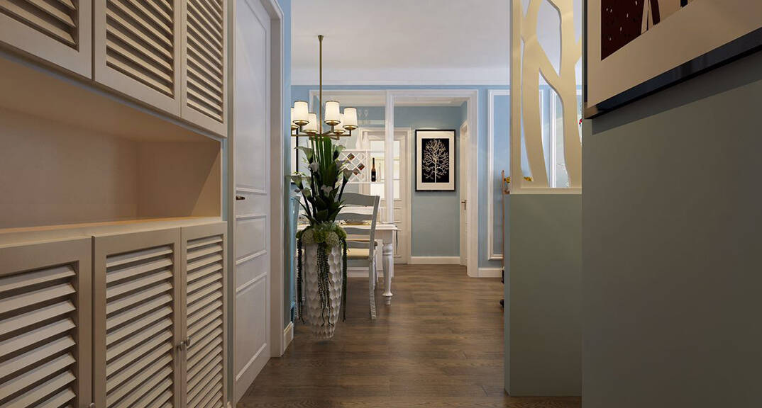 通過柜體及造型面優(yōu)化圓弧形手槍型的弊端,化解斜向墻體,規(guī)整動線,功能性滿足男女主人的收納需求,風(fēng)格清新自然,屬于輕美式,溫馨舒適。