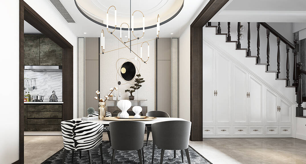 新中式風(fēng)格的餐廳巧妙的融合古典元素與現(xiàn)代元素,不僅滿足了現(xiàn)代人對古典的追求,還緊跟現(xiàn)代潮流的步伐,去除繁復(fù)的裝飾,于細(xì)節(jié)處下筆,設(shè)計(jì)風(fēng)格莊重而內(nèi)斂,給人溫馨、明亮、潔凈的視覺感受。
