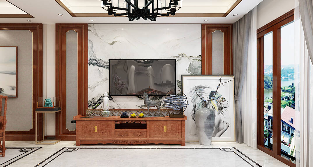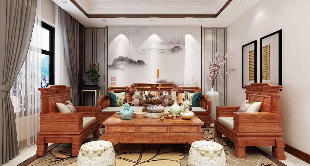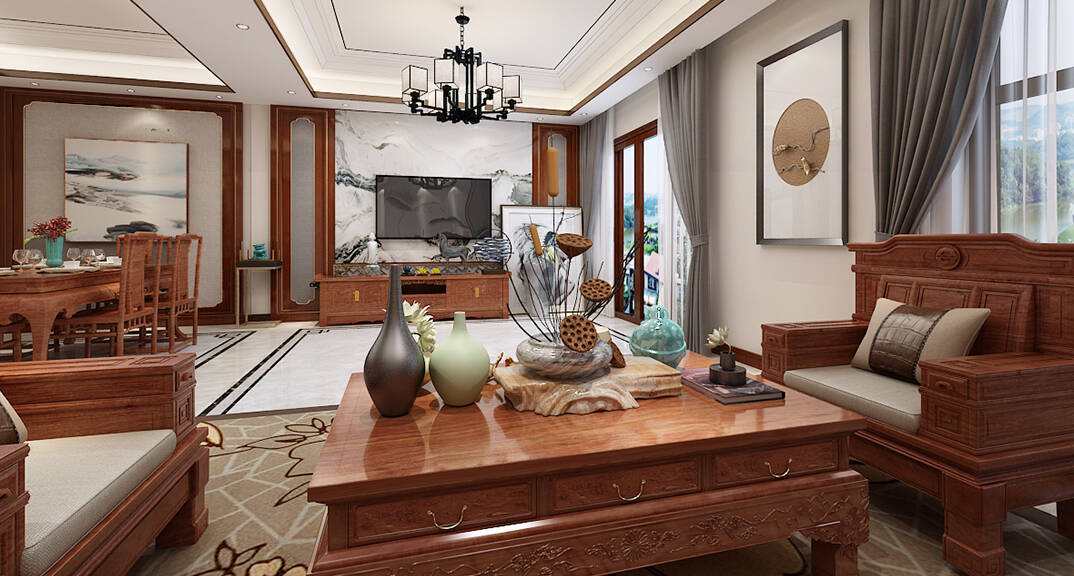 龍湖九里香醍 350㎡ 別墅 新中式風(fēng)格客廳裝修效果圖
