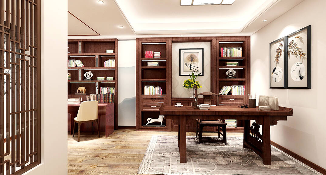 龍湖九里香醍 350㎡ 別墅 新中式風(fēng)格書房裝修效果圖