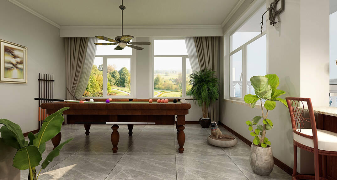 龍湖九里香醍 350㎡ 別墅 新中式風(fēng)格臺球室裝修效果圖