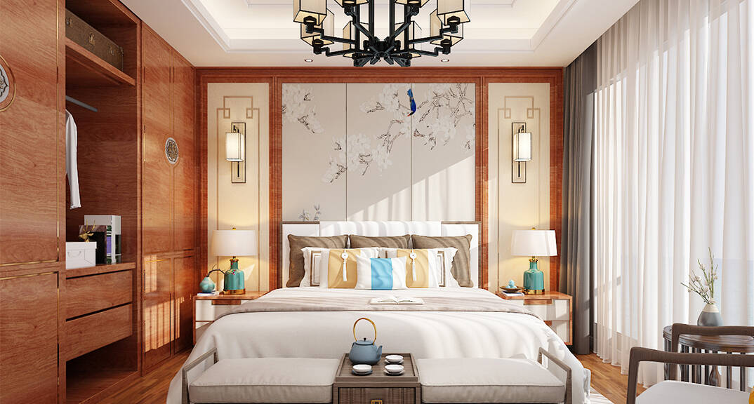 龍湖九里香醍 350㎡ 別墅 新中式風(fēng)格主臥裝修效果圖