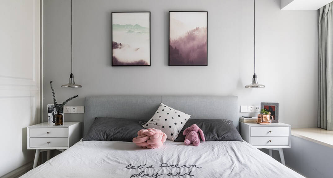 佳源都市100㎡三室兩廳臥室北歐風(fēng)格裝修案例效果圖