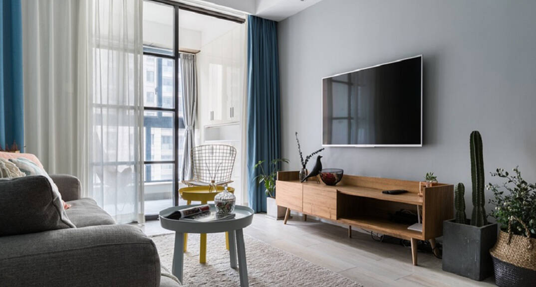 佳源都市100㎡三室兩廳客廳電視北歐風(fēng)格裝修案例效果圖