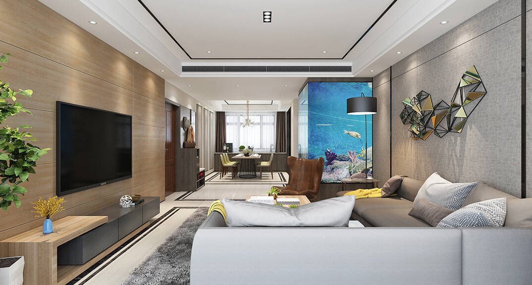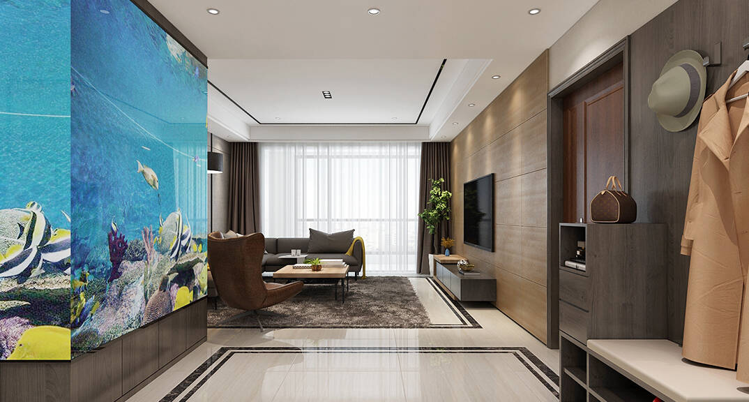 本案以現(xiàn)代港式風(fēng)格設(shè)計(jì),進(jìn)門的魚缸在靜止的空間中平添了一份靈動(dòng)靚麗的風(fēng)景線。