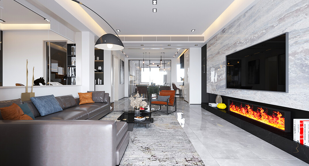 萊頓小鎮(zhèn)·海語墅250㎡別墅下疊一層客廳電視現(xiàn)代簡約風(fēng)格裝修案例效果圖