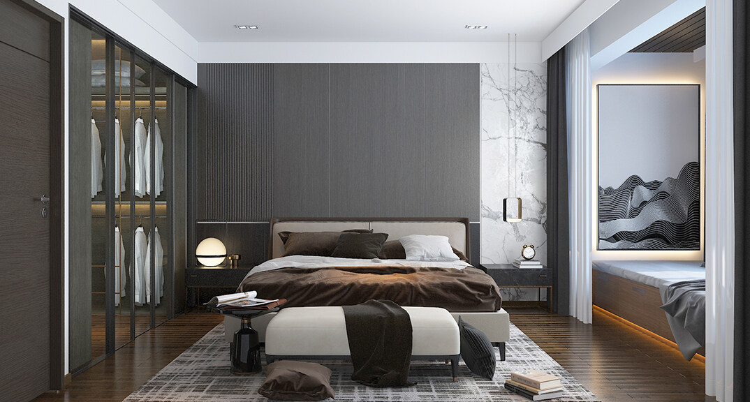 萊頓小鎮(zhèn)·海語墅250㎡別墅下疊二層主臥現(xiàn)代簡約風(fēng)格裝修案例效果圖