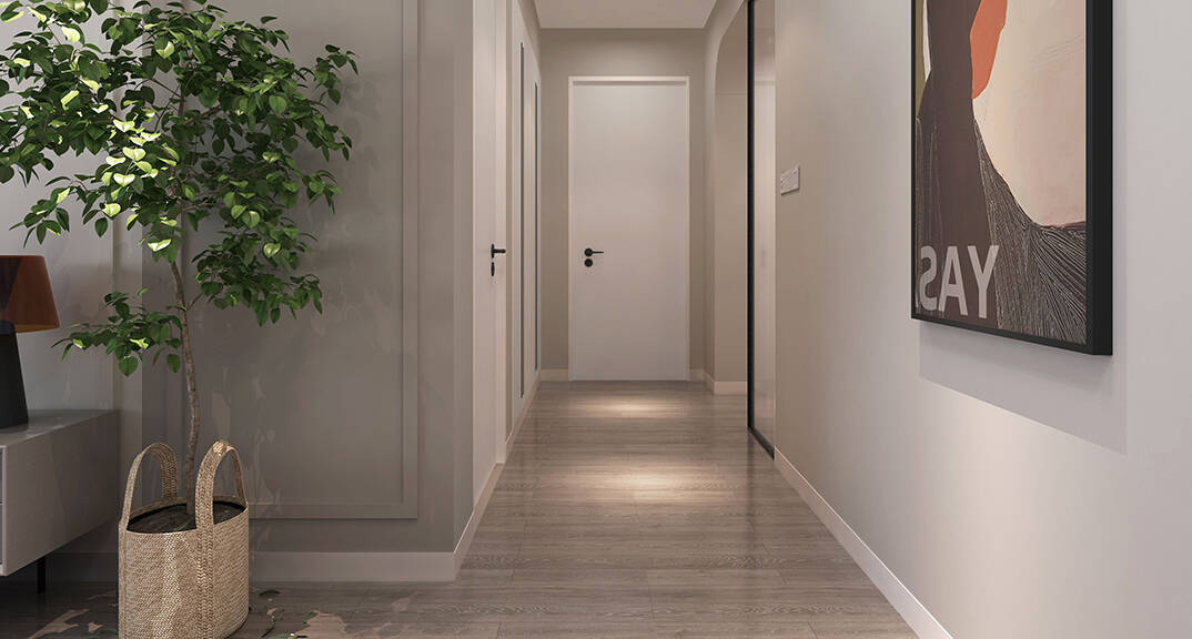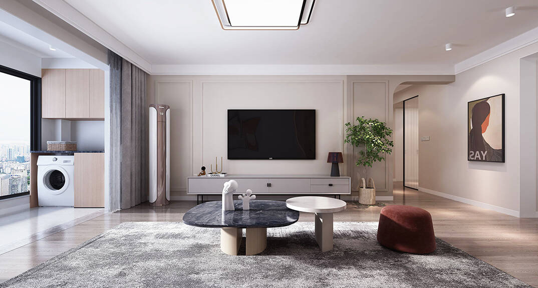 分色墻和弧形門洞設(shè)計(jì)自帶線條感拉伸空間層次。簡(jiǎn)潔利落的硬裝設(shè)計(jì)使空間更具現(xiàn)代感。