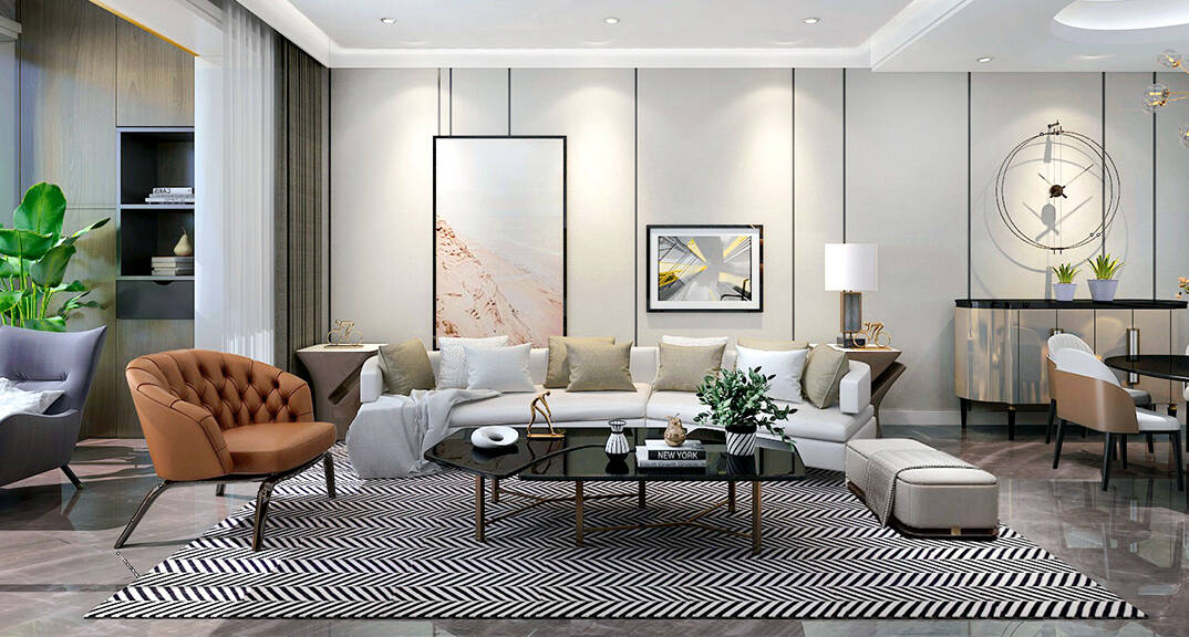 鑫江合院180㎡平層客廳輕奢風(fēng)格裝修案例效果圖