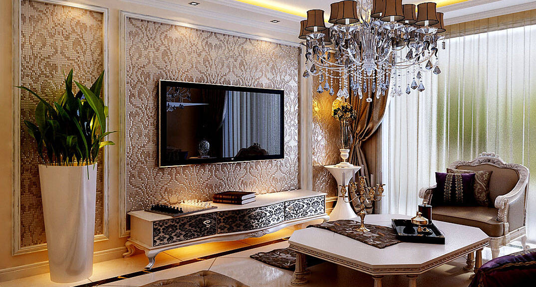 金鳳凰銘品 127㎡ 四室二廳一廚二衛(wèi) 歐式風格客廳電視墻裝修效果圖