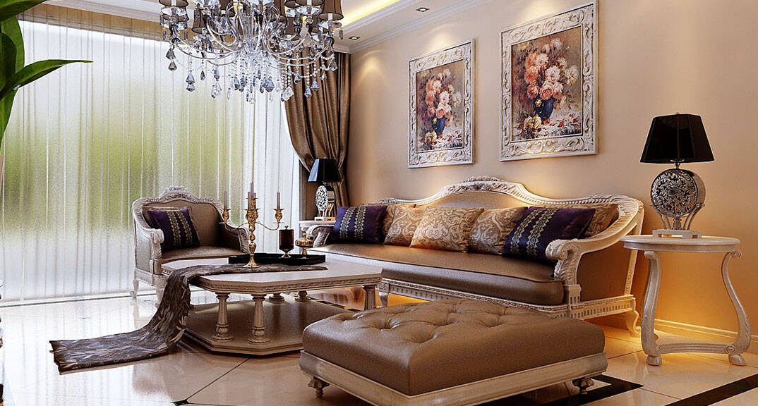 金鳳凰銘品 127㎡ 四室二廳一廚二衛(wèi) 歐式風格客廳沙發(fā)裝修效果圖