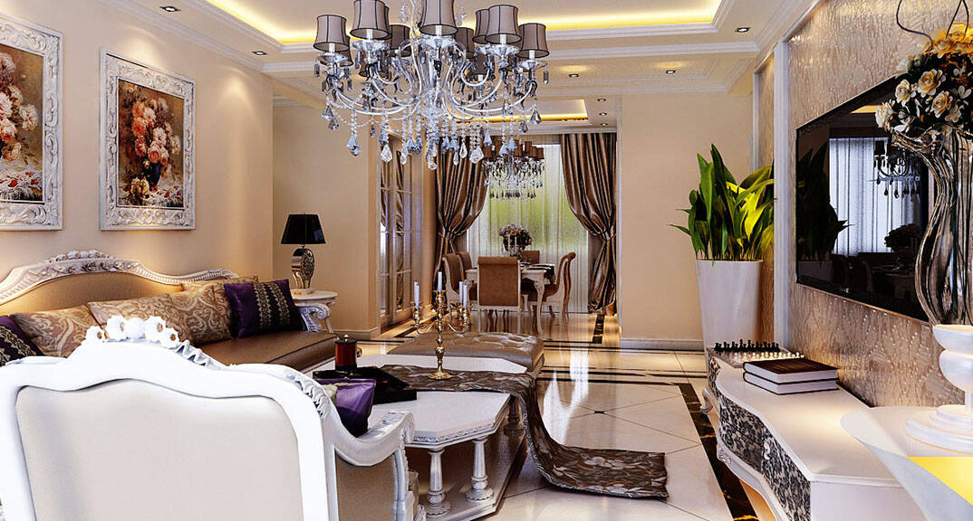 金鳳凰銘品 127㎡ 四室二廳一廚二衛(wèi) 歐式風格客廳裝修效果圖