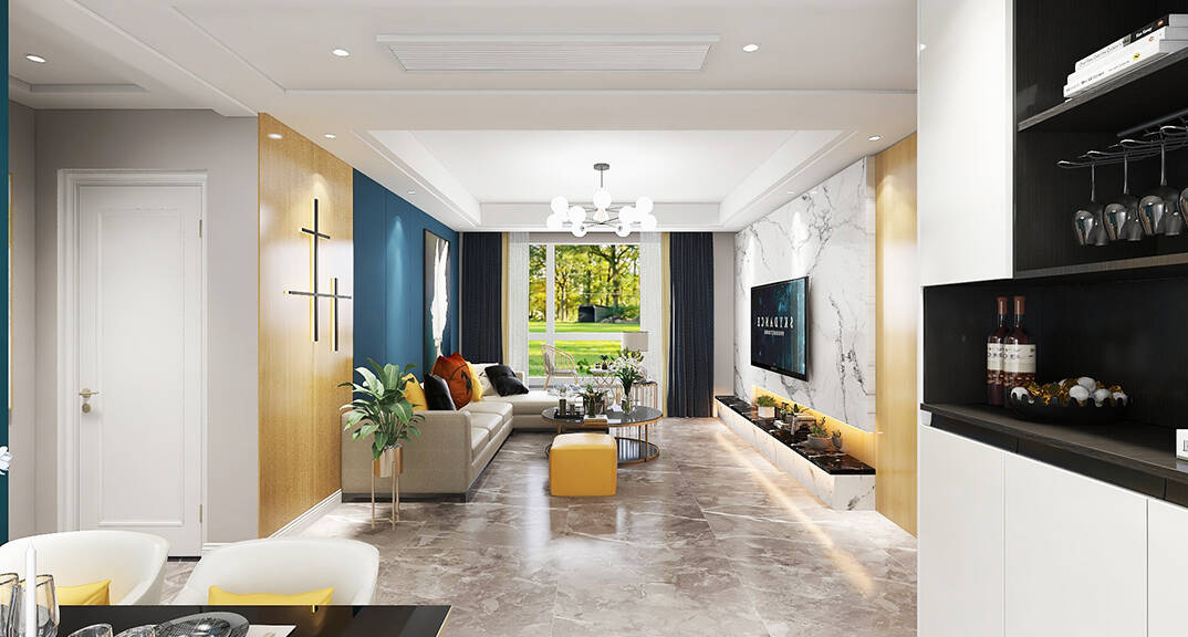 膠州機(jī)場公寓118㎡三室一廳客廳簡約風(fēng)格裝修案例效果圖