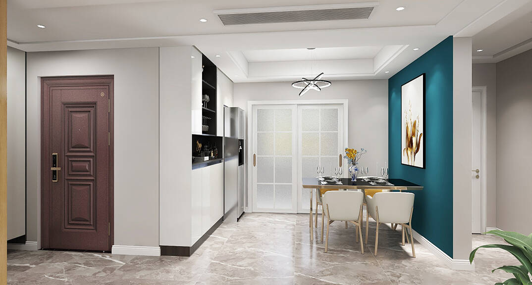 膠州機(jī)場公寓118㎡三室一廳餐廳簡約風(fēng)格裝修案例效果圖