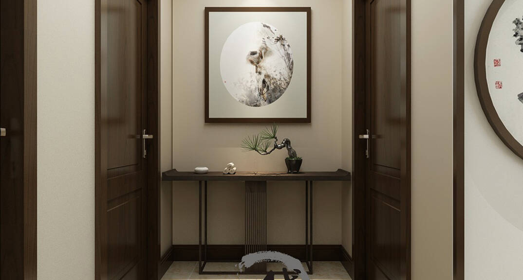 縵沙半島115㎡四室兩廳兩衛(wèi)入戶玄關(guān)現(xiàn)代中式風(fēng)格裝修案例效果圖
