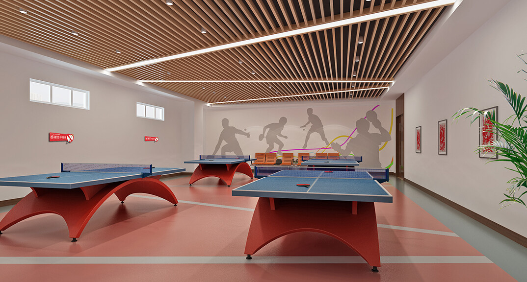 老年活動中心840㎡工裝乒乓室簡約風格裝修案例效果圖