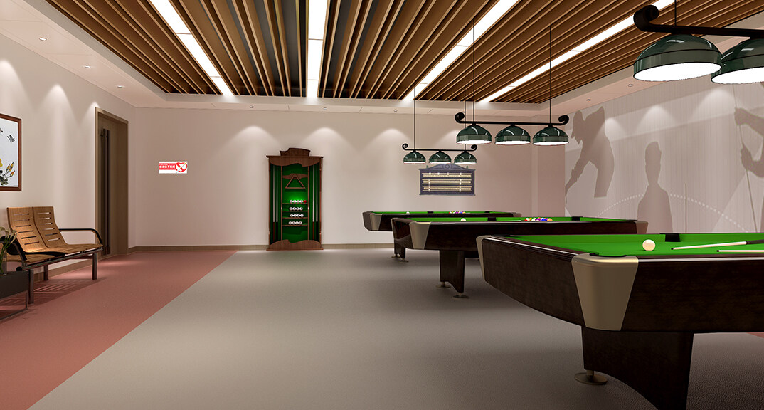 老年活動中心840㎡工裝臺球室簡約風格裝修案例效果圖