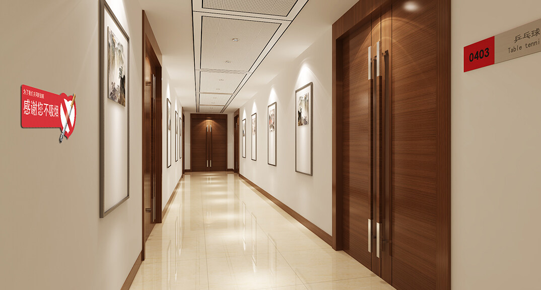 老年活動中心840㎡工裝走廊簡約風格裝修案例效果圖