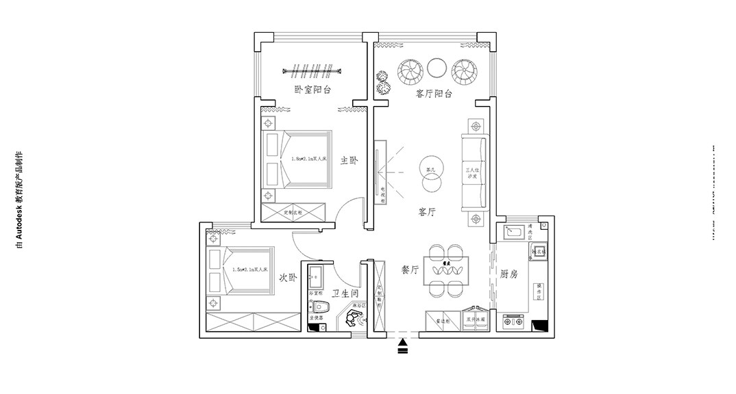 青安·海悅居86㎡二室二廳右廚房中間戶戶型布置圖