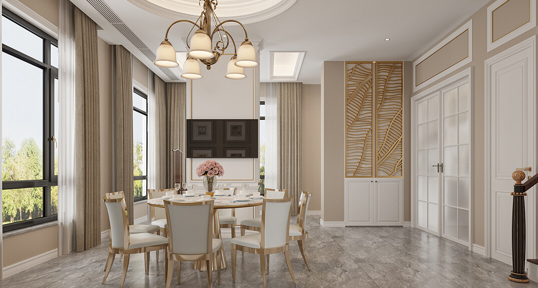 海信千畝園240㎡三室兩廳餐廳美式輕奢風(fēng)格裝修案例效果圖