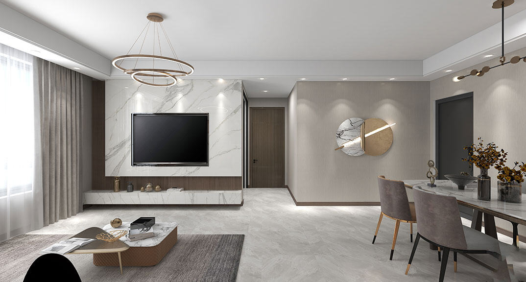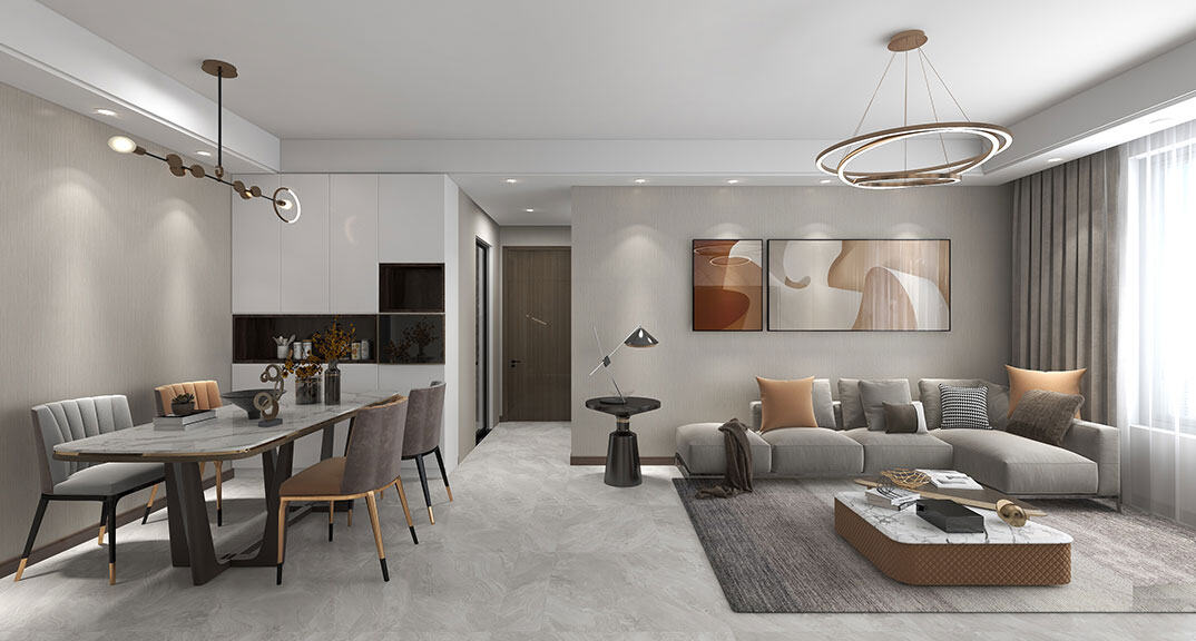 金地·錦宸110㎡三室一廳客餐廳現(xiàn)代簡(jiǎn)約風(fēng)格戶型研發(fā)案例效果圖