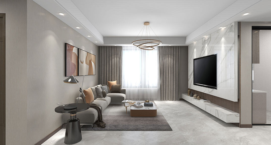 金地·錦宸110㎡三室一廳客廳現(xiàn)代簡(jiǎn)約風(fēng)格戶型研發(fā)案例效果圖