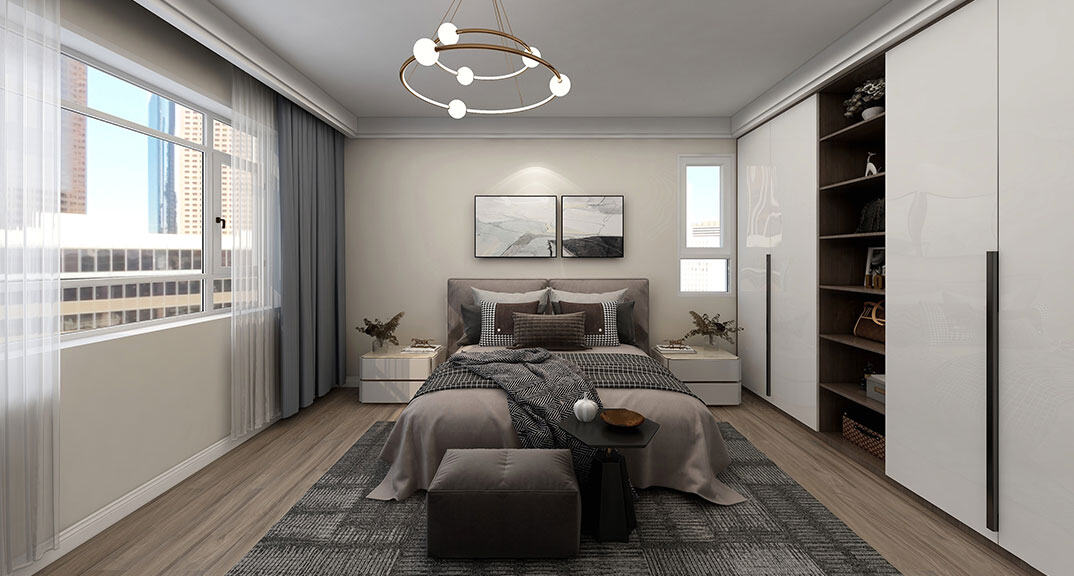 金地·錦宸110㎡三室一廳次臥現(xiàn)代簡(jiǎn)約風(fēng)格戶型研發(fā)案例效果圖