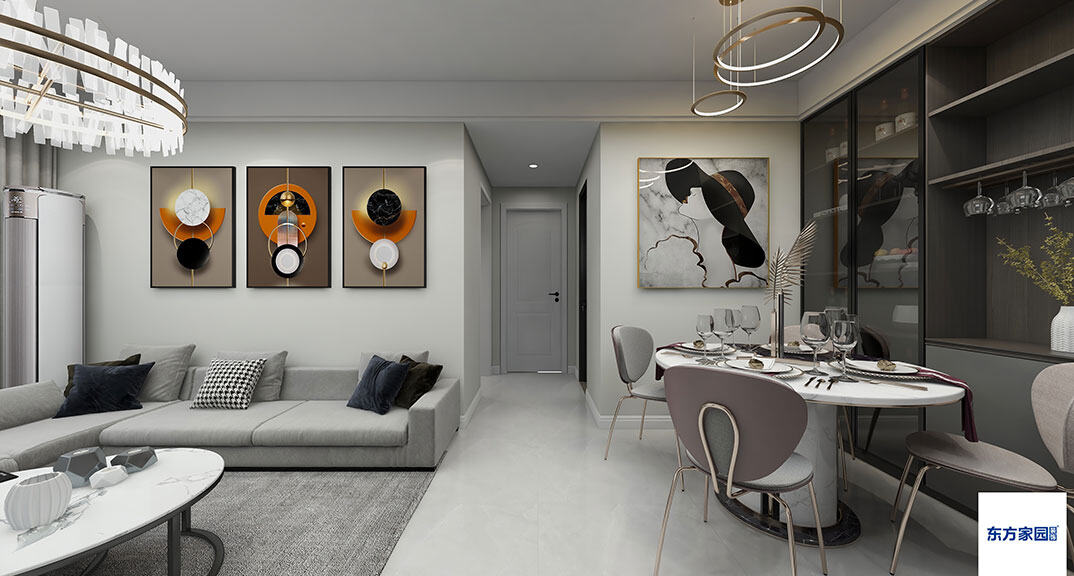 悅海地120㎡三室兩廳客餐廳現(xiàn)代簡(jiǎn)約風(fēng)格裝修案例效果圖