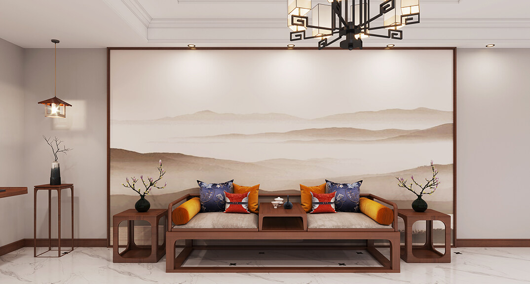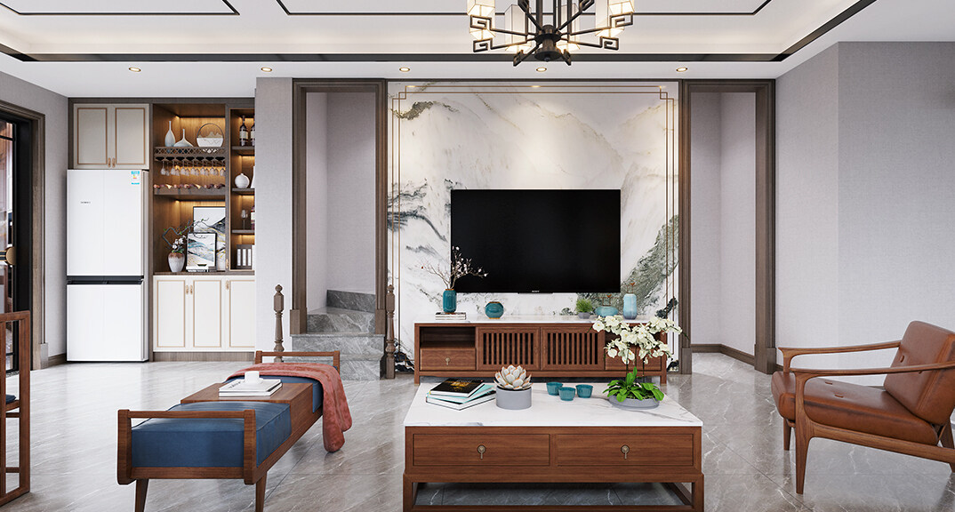 紫荊閣150㎡別墅下疊新中式風格裝修案例效果圖