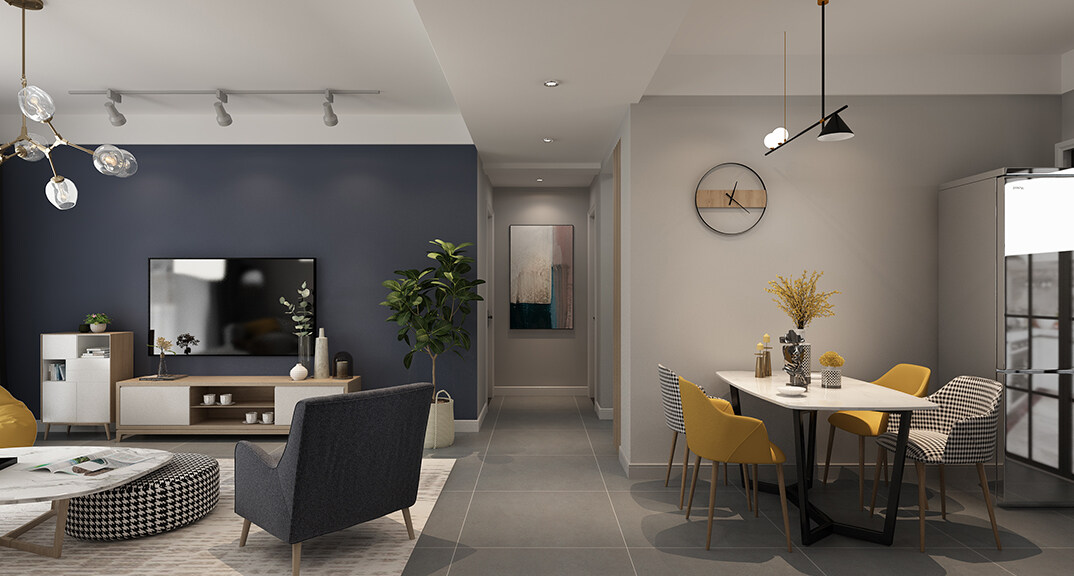 永利國際134㎡三室兩廳客餐廳北歐風(fēng)格裝修案例效果圖