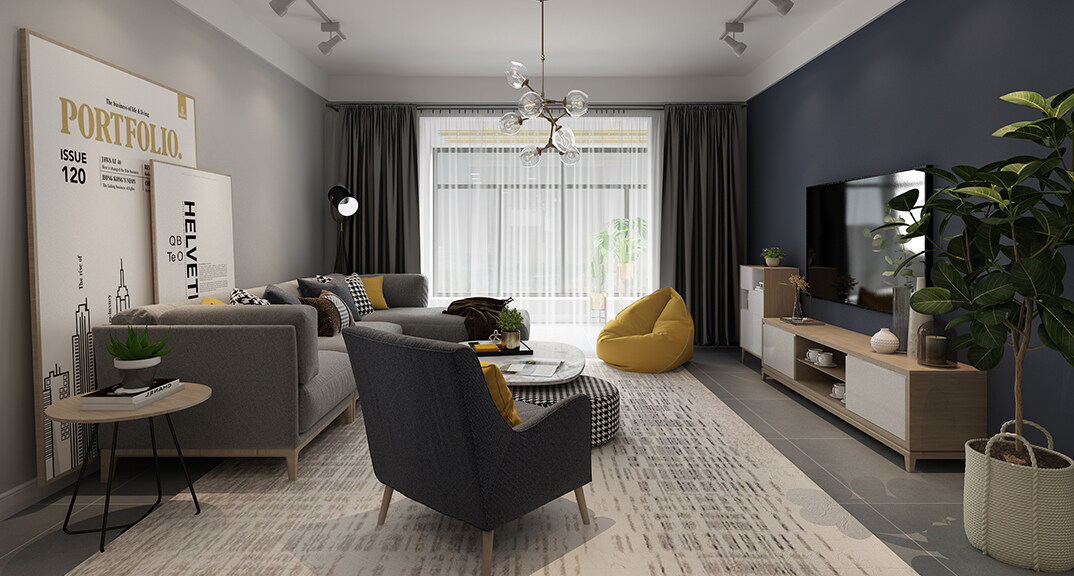 永利國際134㎡三室兩廳客廳北歐風(fēng)格裝修案例效果圖