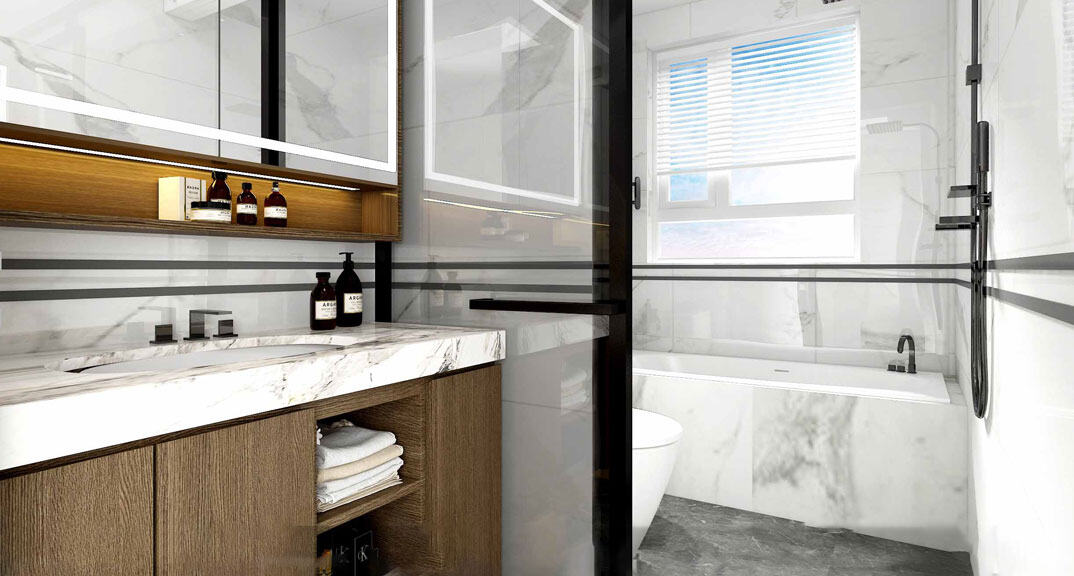 安泰德園130㎡復(fù)式衛(wèi)生間美式輕奢風(fēng)格裝修案例效果圖