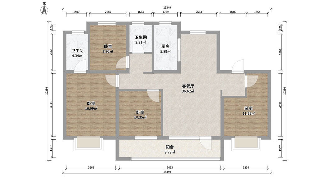 依云四季118㎡三室兩廳次臥現(xiàn)代簡約風(fēng)格戶型研發(fā)案例效果圖