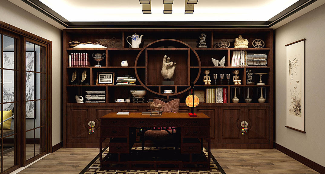 依云四季138㎡四室兩廳書房新中式風格裝修案例效果圖