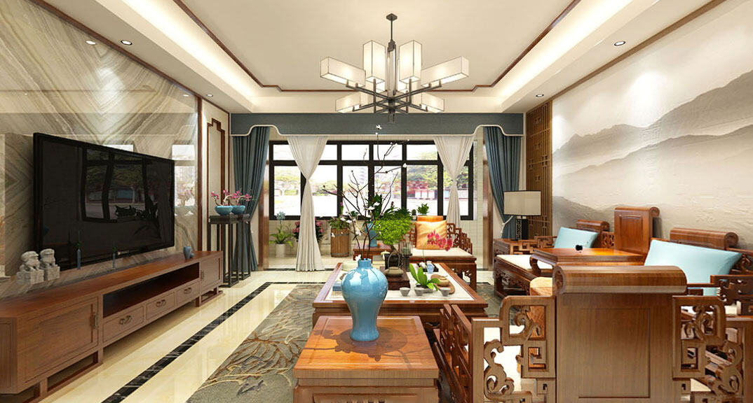 市直三區(qū)160㎡三室兩廳客廳中式風(fēng)格裝修案例效果圖