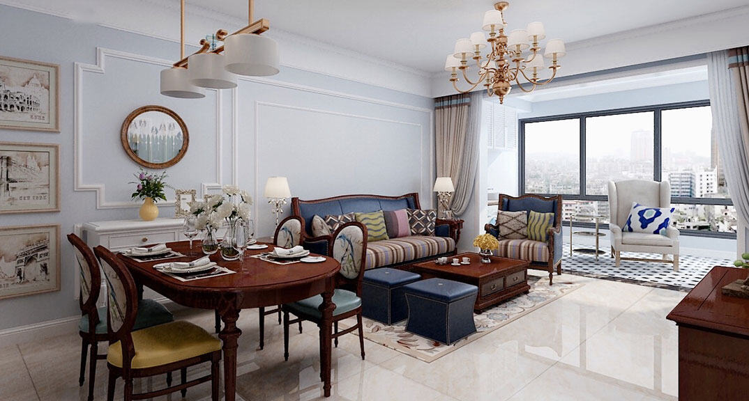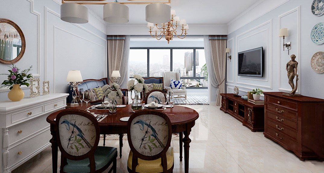 安泰德園138㎡三室兩廳客餐廳美式風(fēng)格裝修案例效果圖