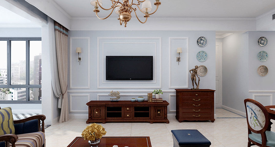 安泰德園138㎡三室兩廳客廳電視美式風(fēng)格裝修案例效果圖