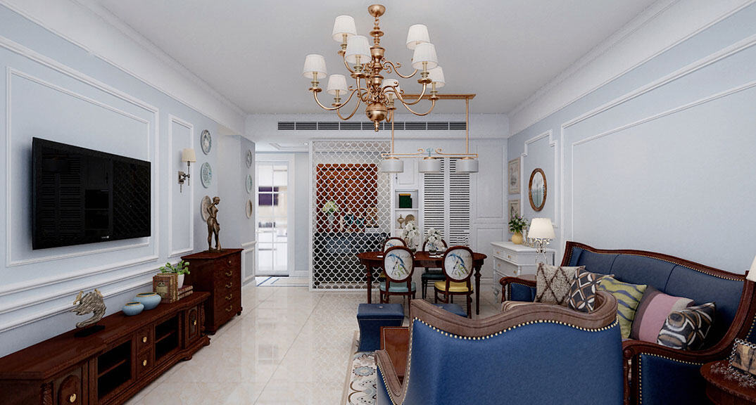安泰德園138㎡三室兩廳客廳美式風(fēng)格裝修案例效果圖