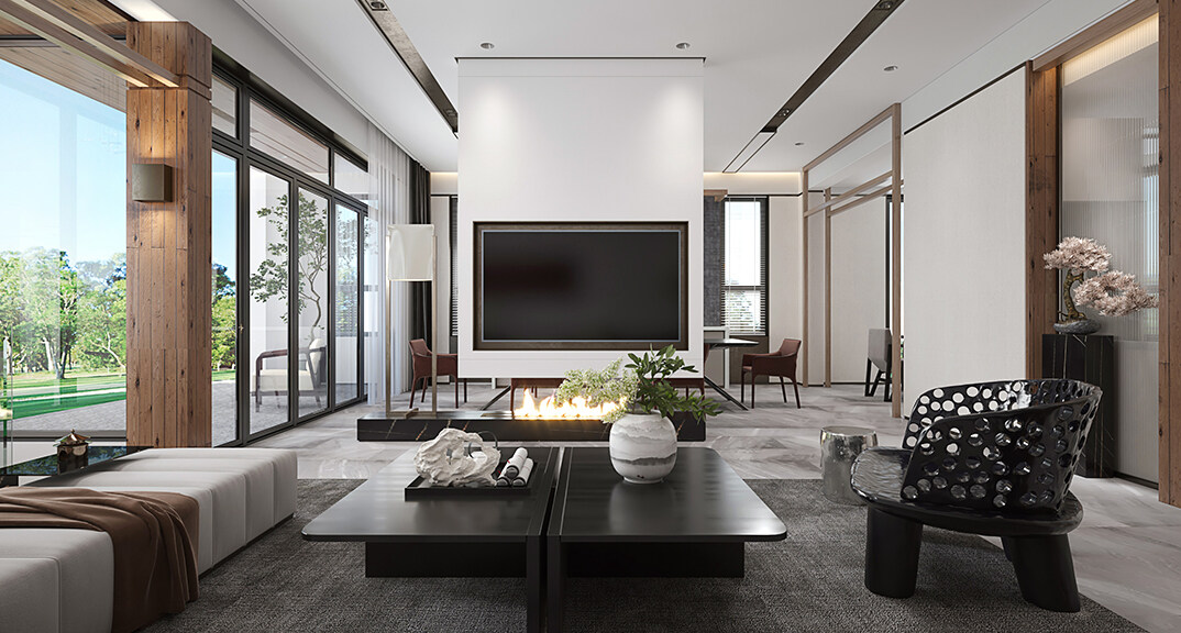 綠城·留香園300㎡別墅客餐廳輕奢風(fēng)格裝修案例效果圖