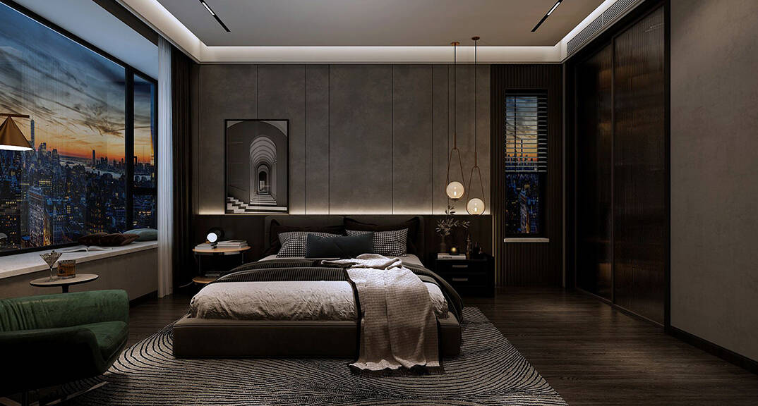 海信積米灣145m2三室兩廳臥室輕奢風(fēng)格裝修案例效果圖