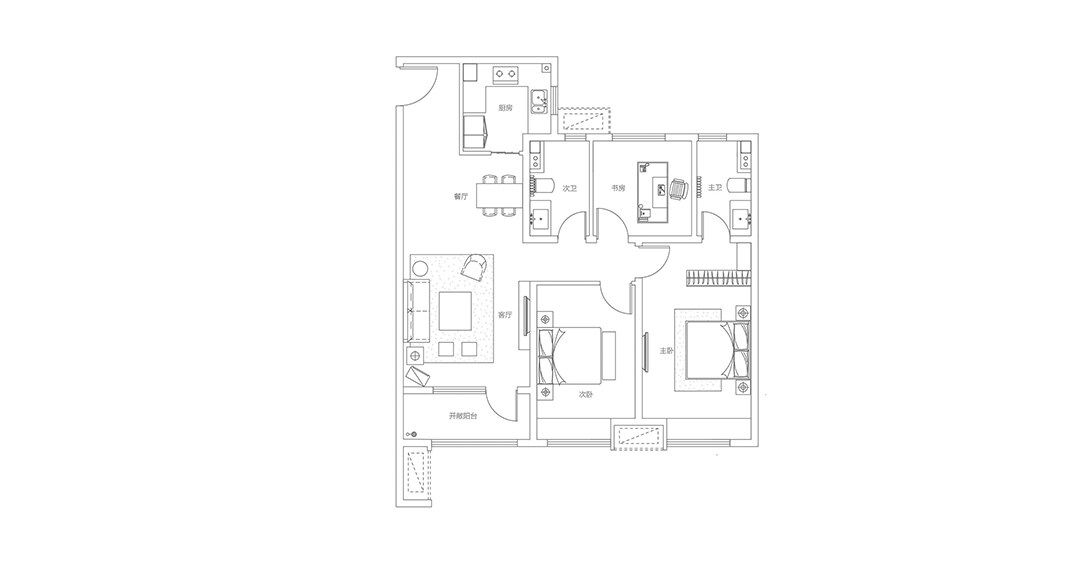 青特星城119㎡三室兩廳書房新中式風(fēng)格裝修案例效果圖