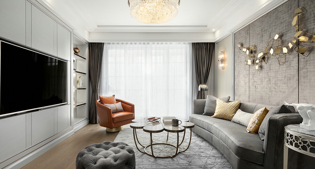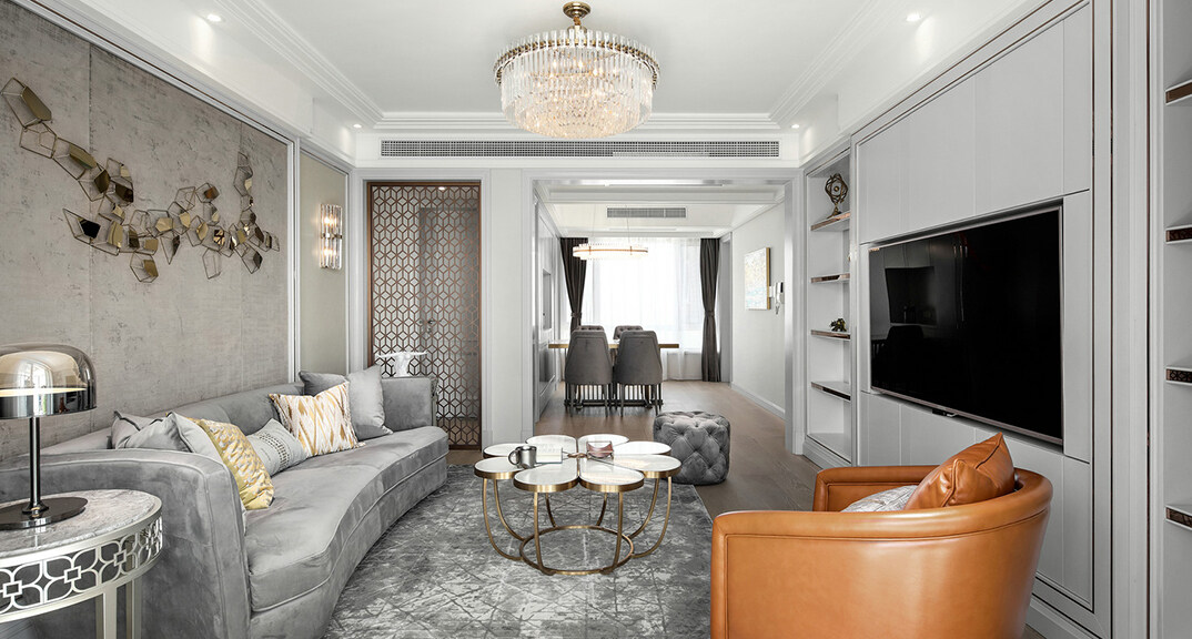 青特星城113㎡三室兩廳客廳美式風(fēng)格裝修案例效果圖