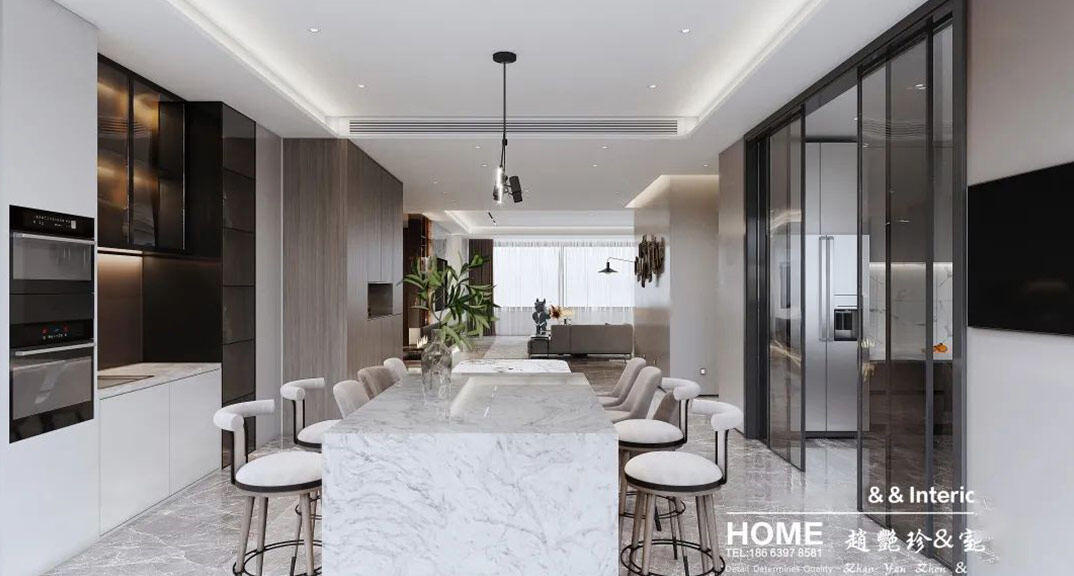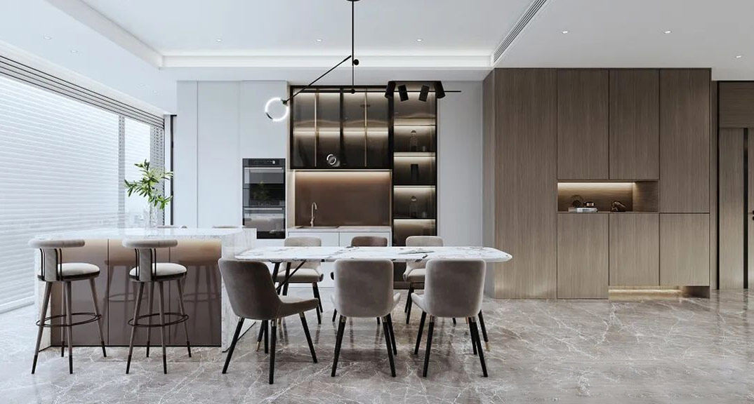日鋼綠城300㎡別墅餐廳現(xiàn)代輕奢風(fēng)格裝修案例效果圖