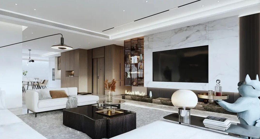 日鋼綠城300㎡別墅客廳現(xiàn)代輕奢風(fēng)格裝修案例效果圖