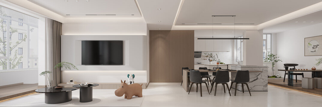 東岸世家167㎡三室兩廳客餐廳現(xiàn)代極簡(jiǎn)風(fēng)格裝修案例效果圖