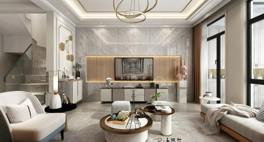 原筑300㎡別墅客廳電視現(xiàn)代輕奢風(fēng)格裝修案例效果圖