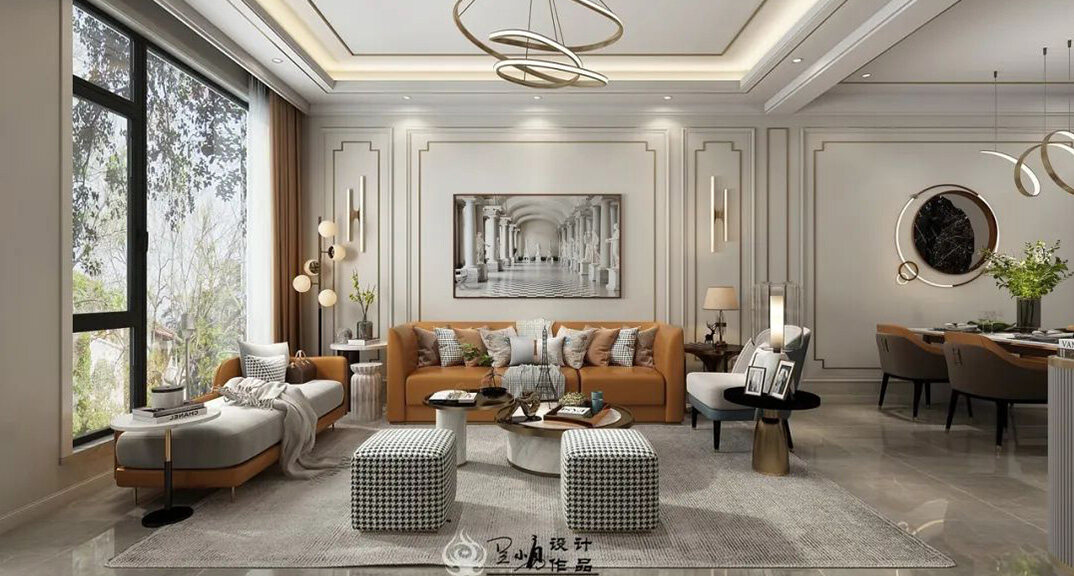 原筑300㎡別墅客廳沙發(fā)現(xiàn)代輕奢風(fēng)格裝修案例效果圖