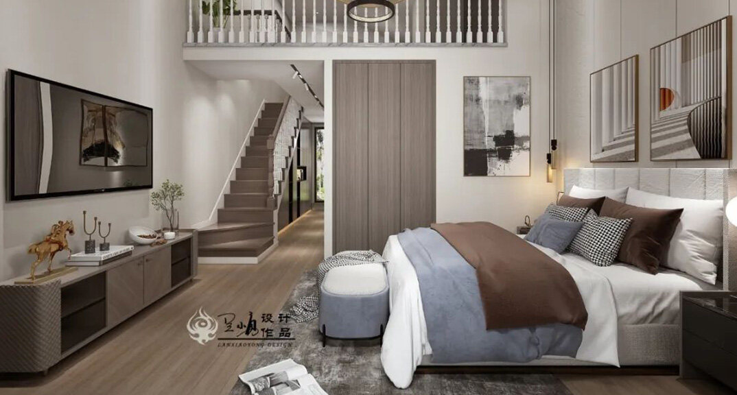 原筑300㎡別墅次臥現(xiàn)代輕奢風(fēng)格裝修案例效果圖