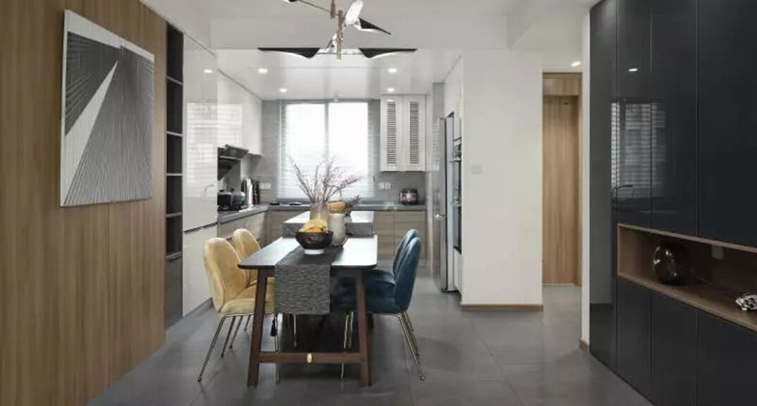 悅湖灣135㎡三室兩廳廚房新中式風(fēng)格裝修案例效果圖